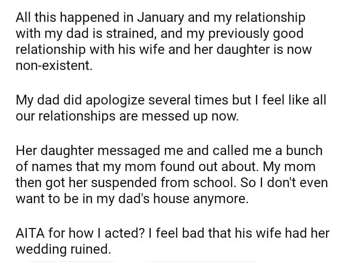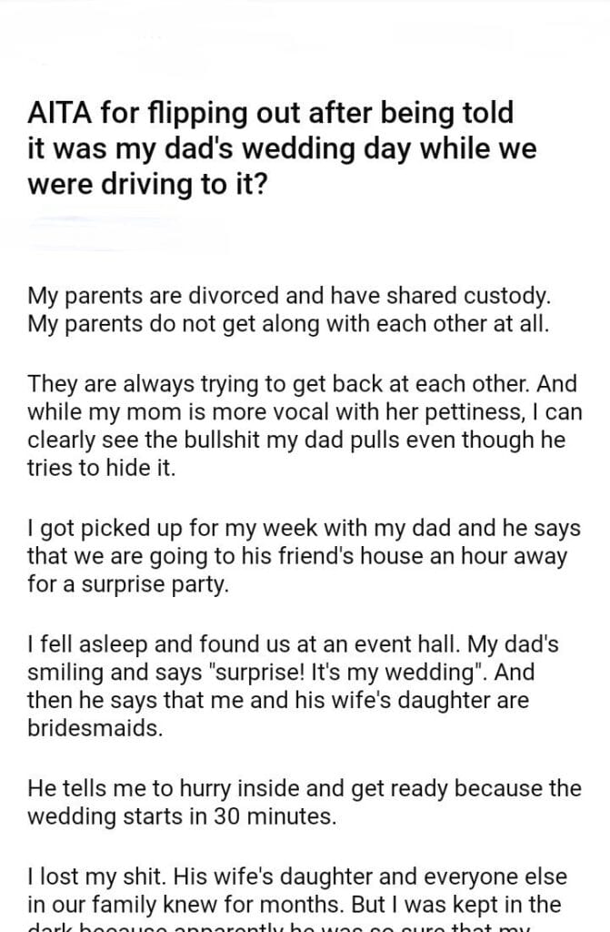 AITA being told it was my dad’s wedding day while we were driving to it?