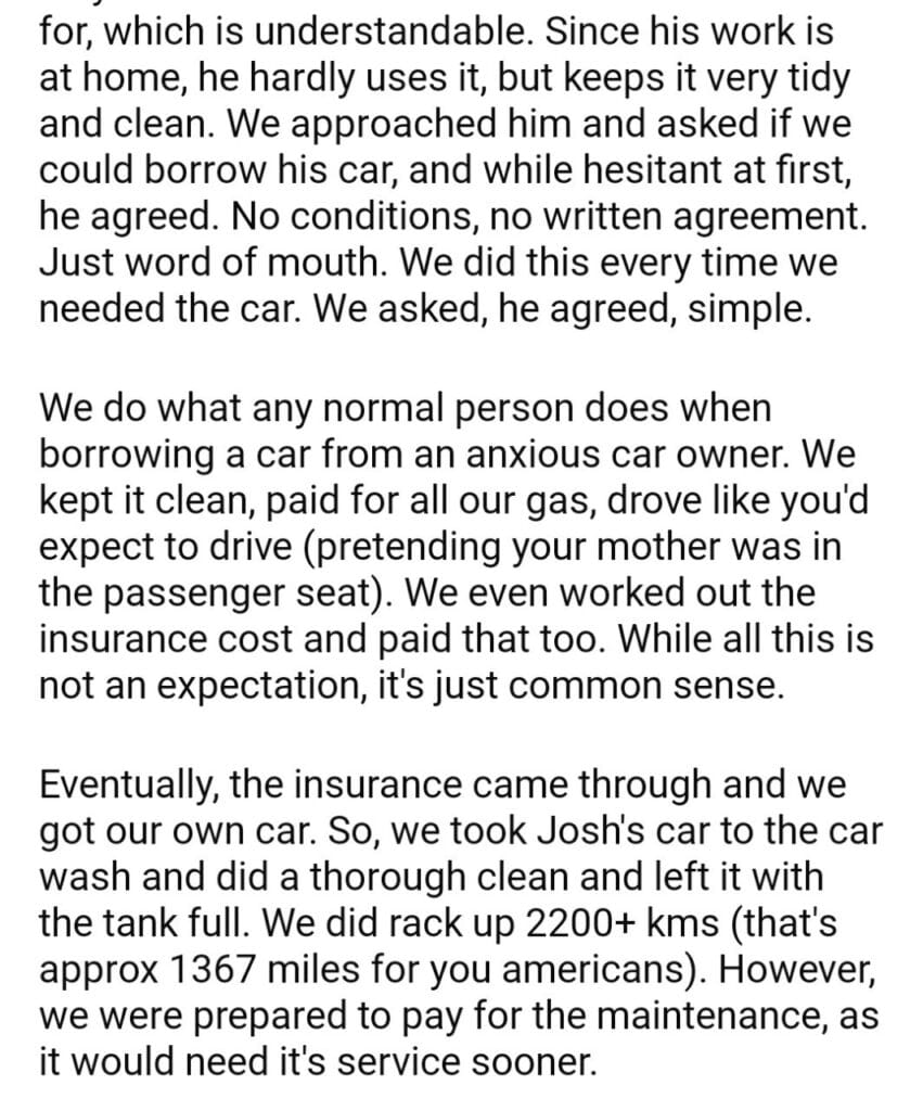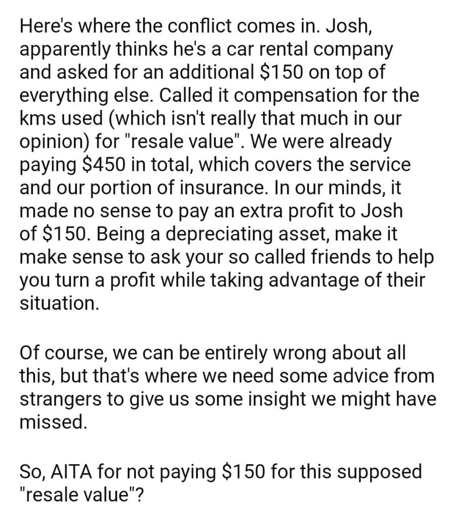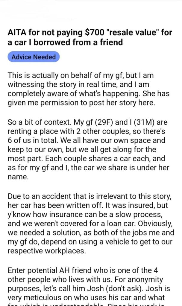 AITA for a car I borrowed from a friend