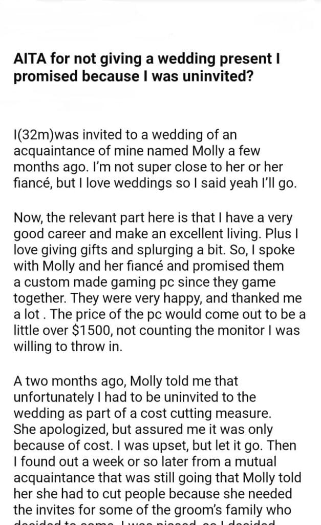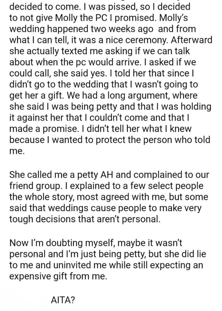 AITA for a wedding present