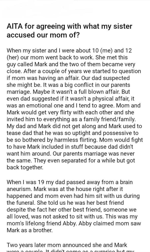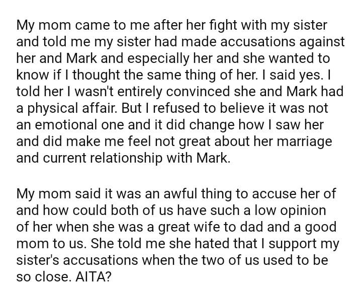 AITA for agreeing with what my sister accused our mom of?