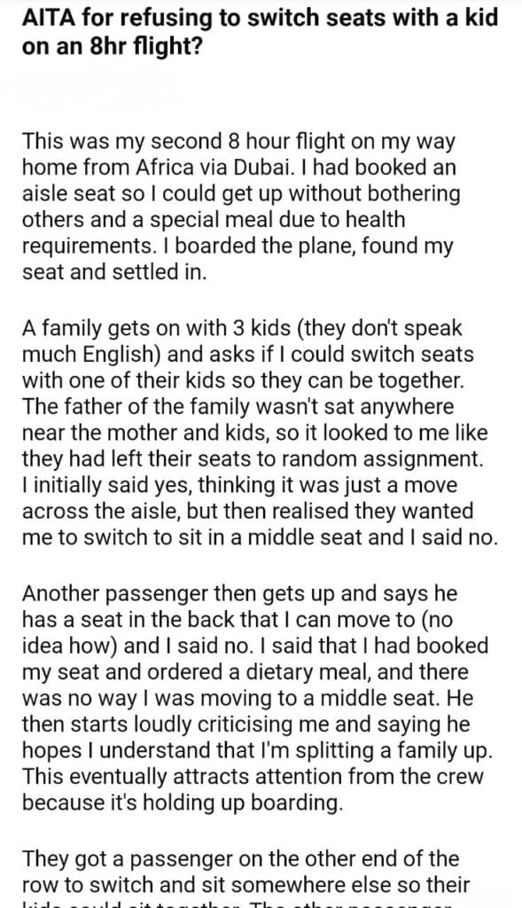 AITA for an 8hr flight?