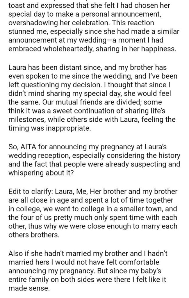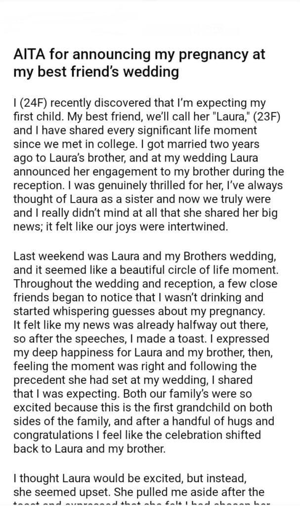 AITA for announcing my pregnancy at my best friend’s wedding