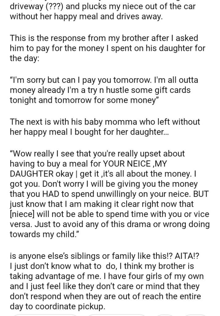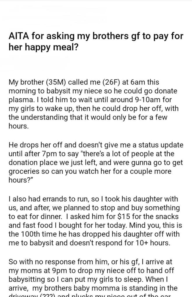 AITA for asking my brothers gf to pay for her happy meal?