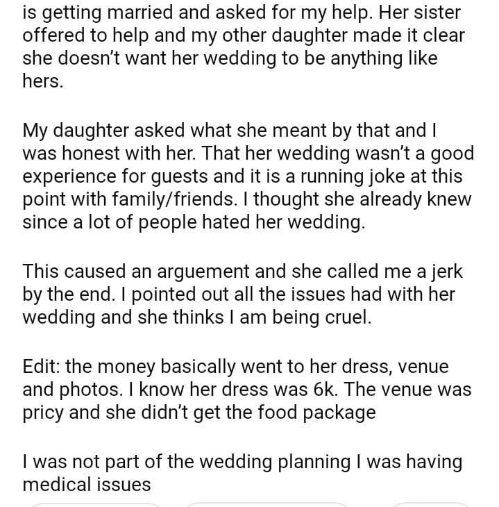 AITA for being honest and telling my daughter