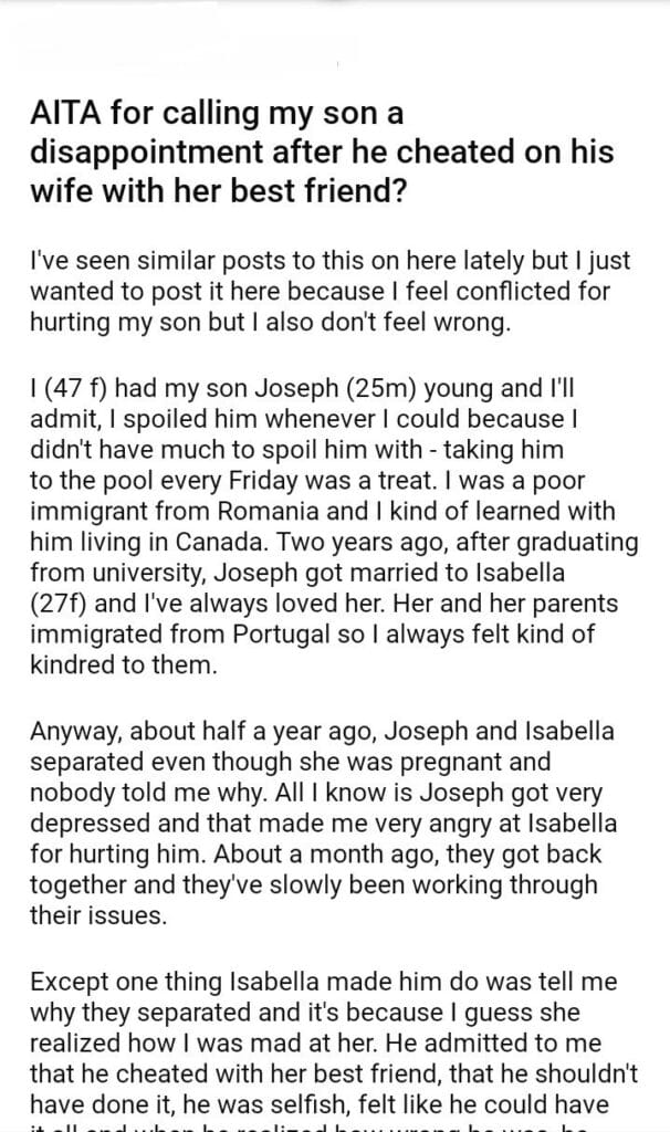 AITA for calling my son a dissappointment