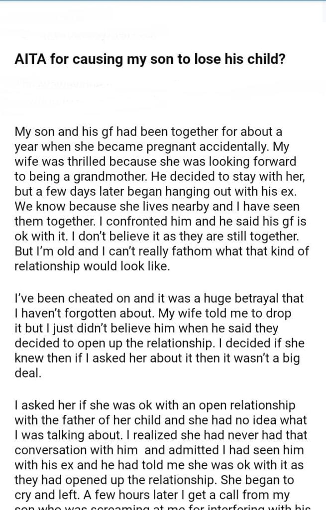 AITA for causing my son his child?
