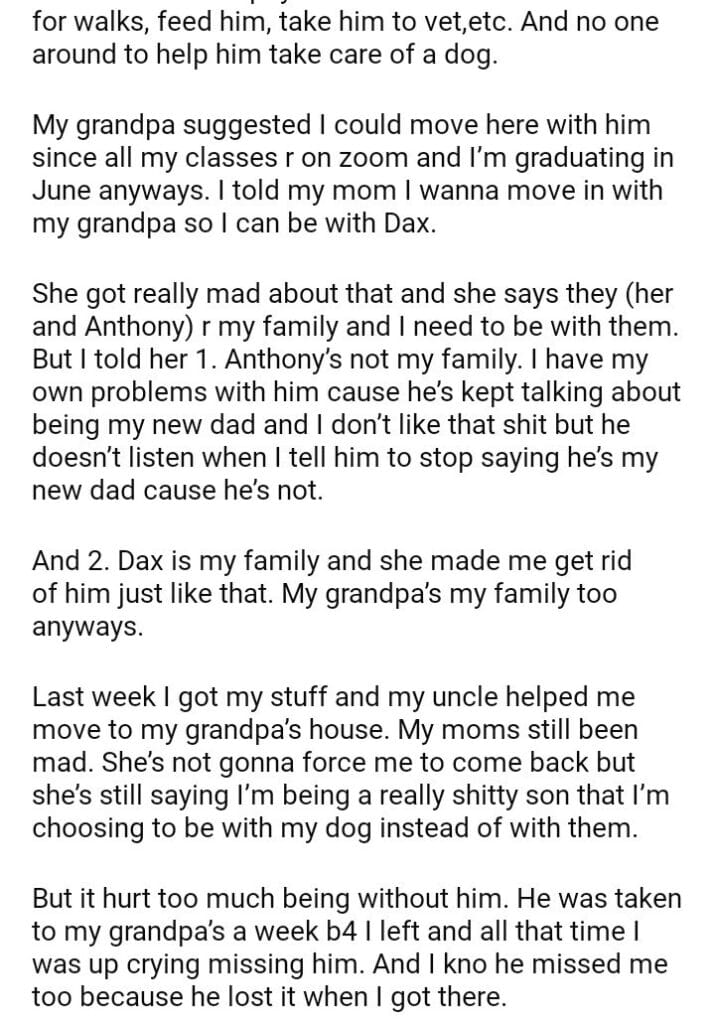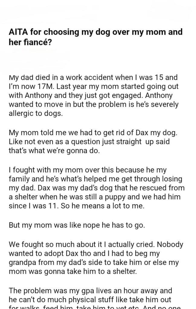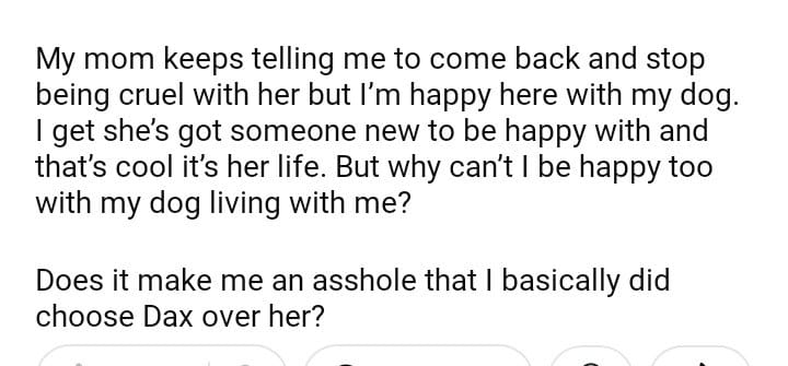 AITA for choosing my dog over my mom and her fiancé?