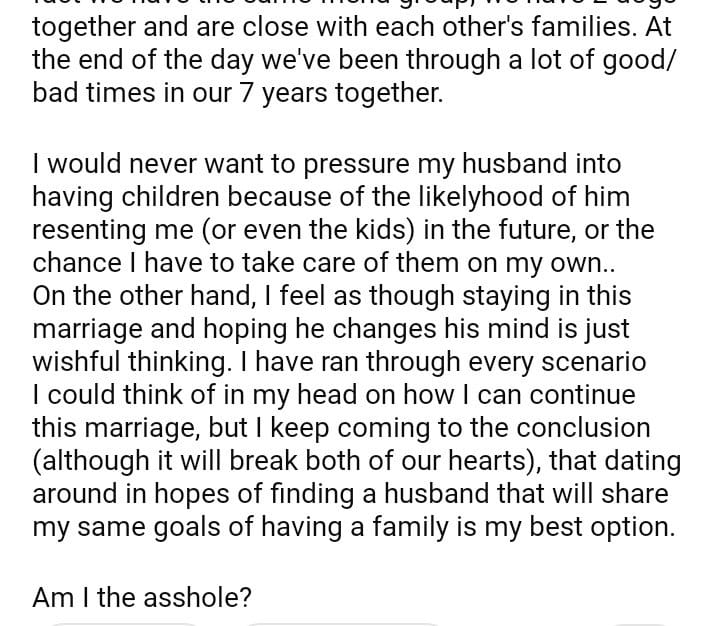 AITA for considering divorcing my husband over him not wanting kids?