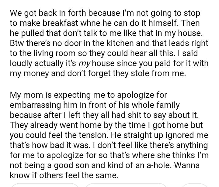 AITA for embarrassing my stepdad in front of his family saying he’s in my house?