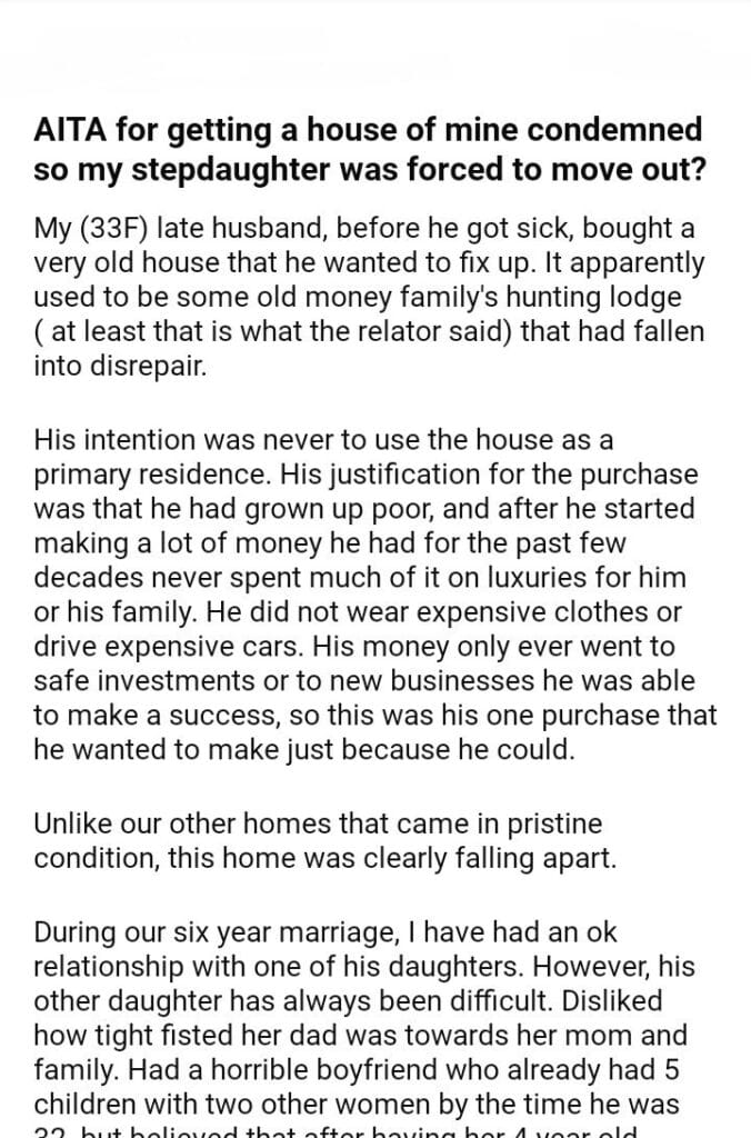 AITA for getting a house of mine so my stepdaughter can move out?
