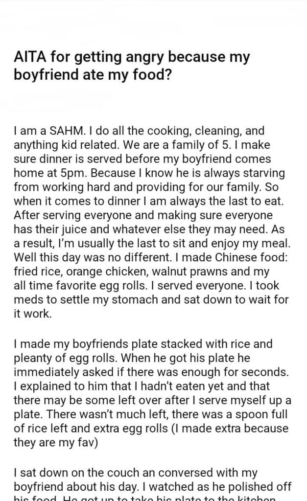 AITA for getting angry because my boyfriend ate my food?