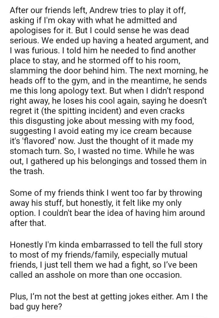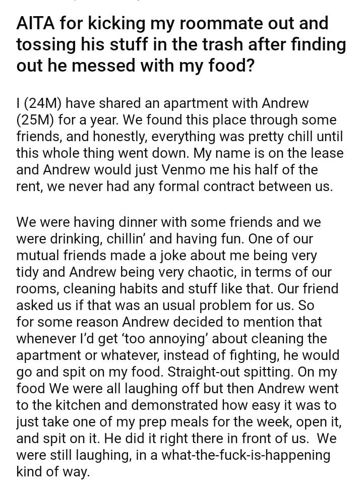 AITA for kicking my roommate out and tossing his stuff in the trash after finding out he messed with my food?