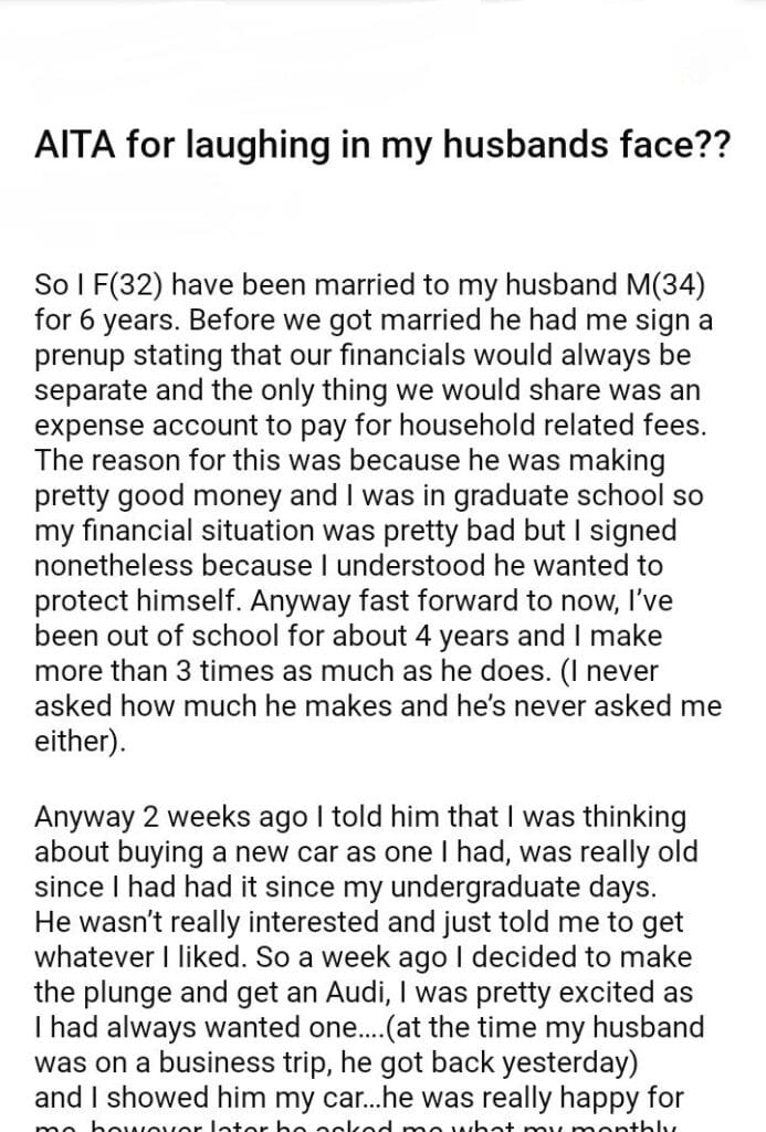 AITA for laughing in my husbands face??