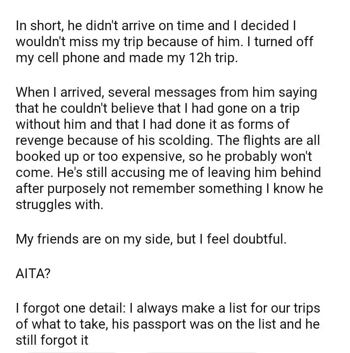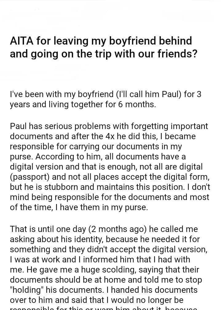 AITA for leaving my boyfriend behind and going on the trip with our friends?