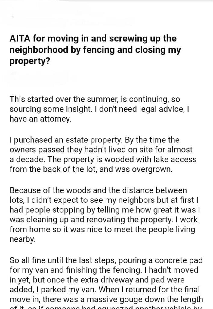 AITA for moving in the neighborhood by fencing and closing my property?