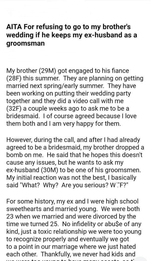 AITA For my brother’s wedding