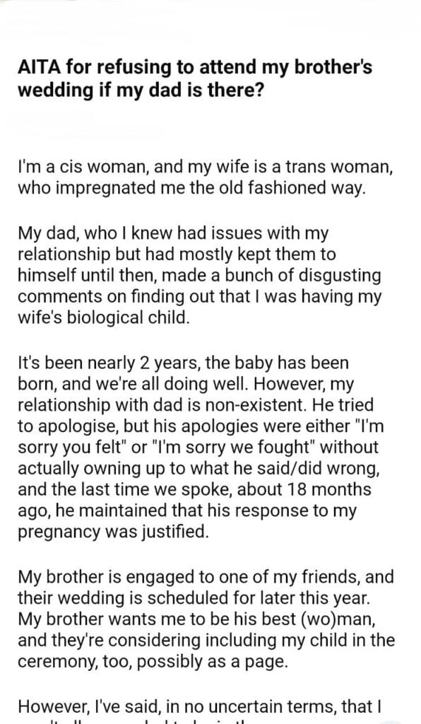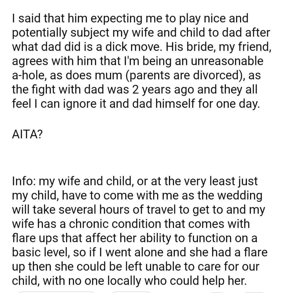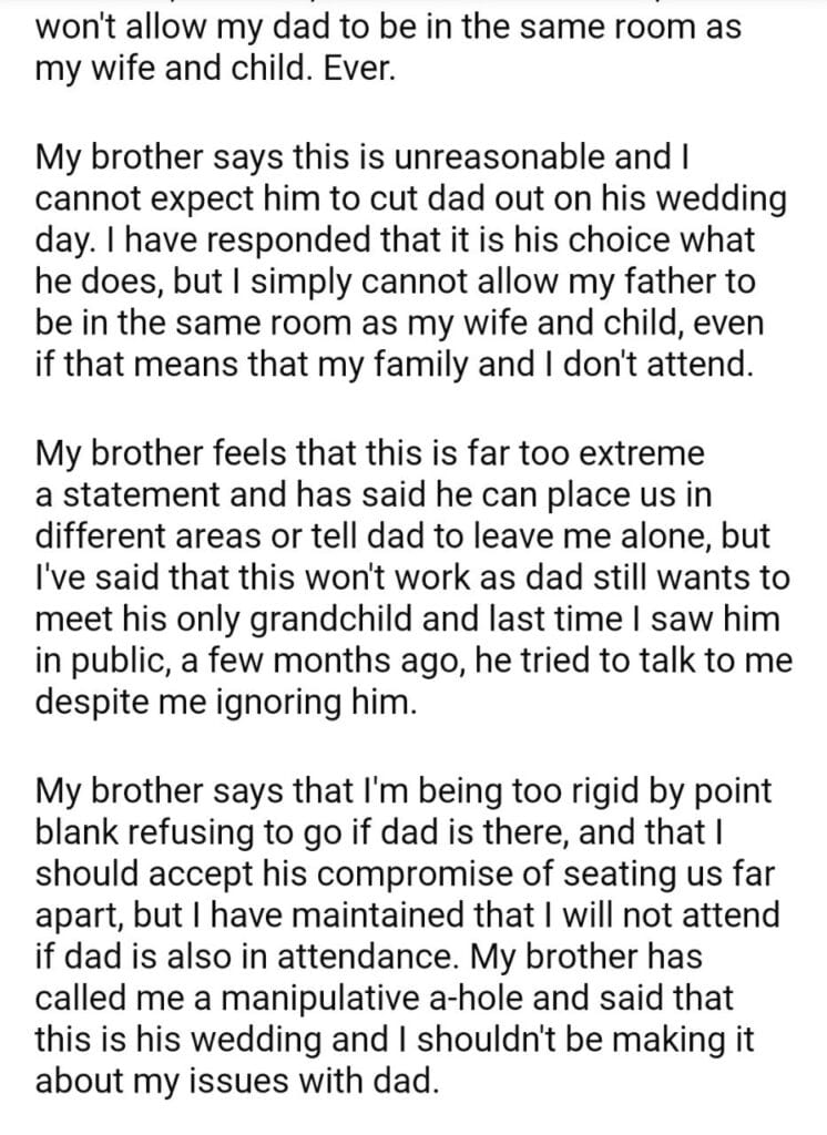 AITA for my brother’s wedding if my dad is there?