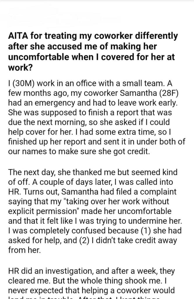 AITA for my coworker differently