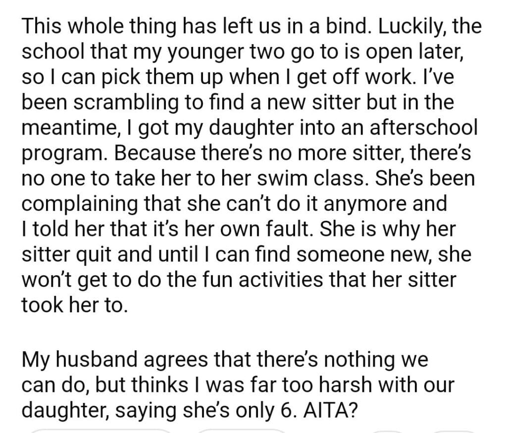 AITA for my daughter babysitter