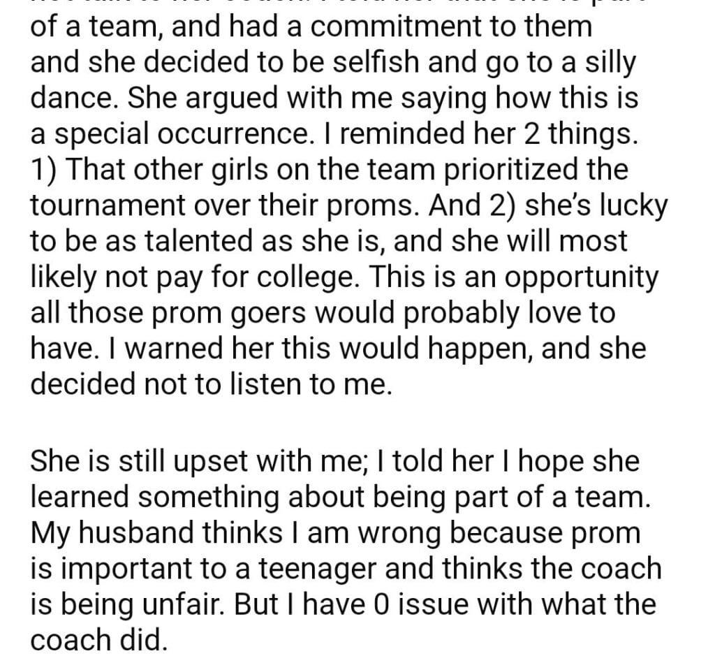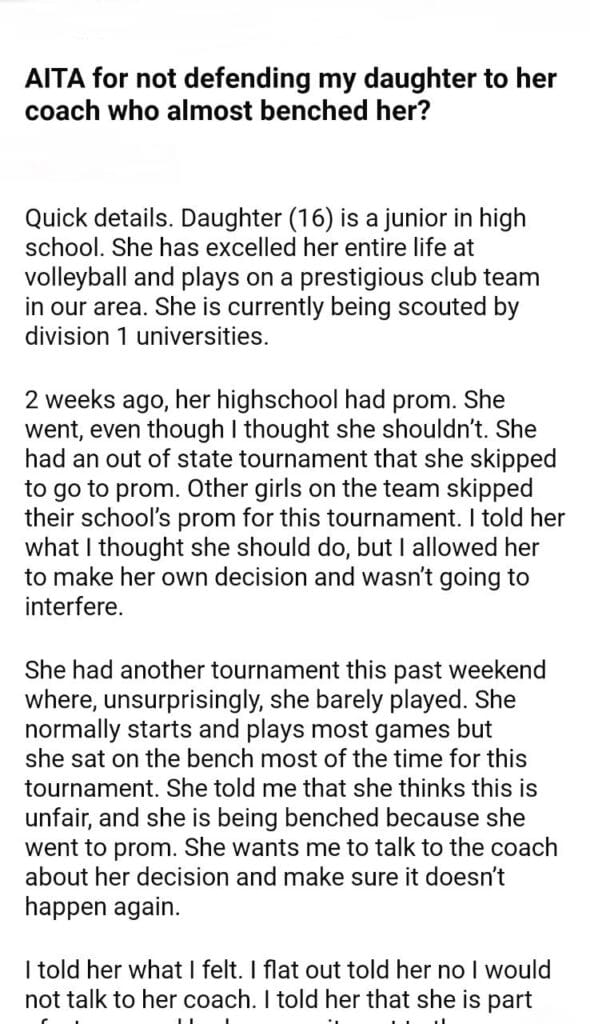 AITA for my daughter coach