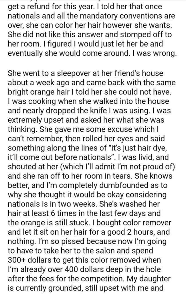 AITA for my daughter hair?