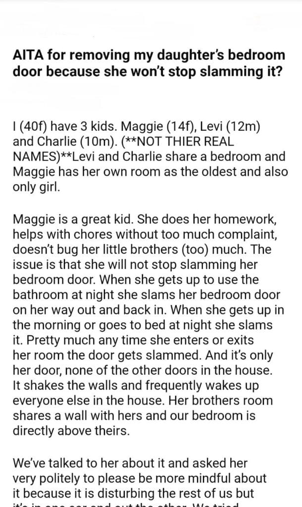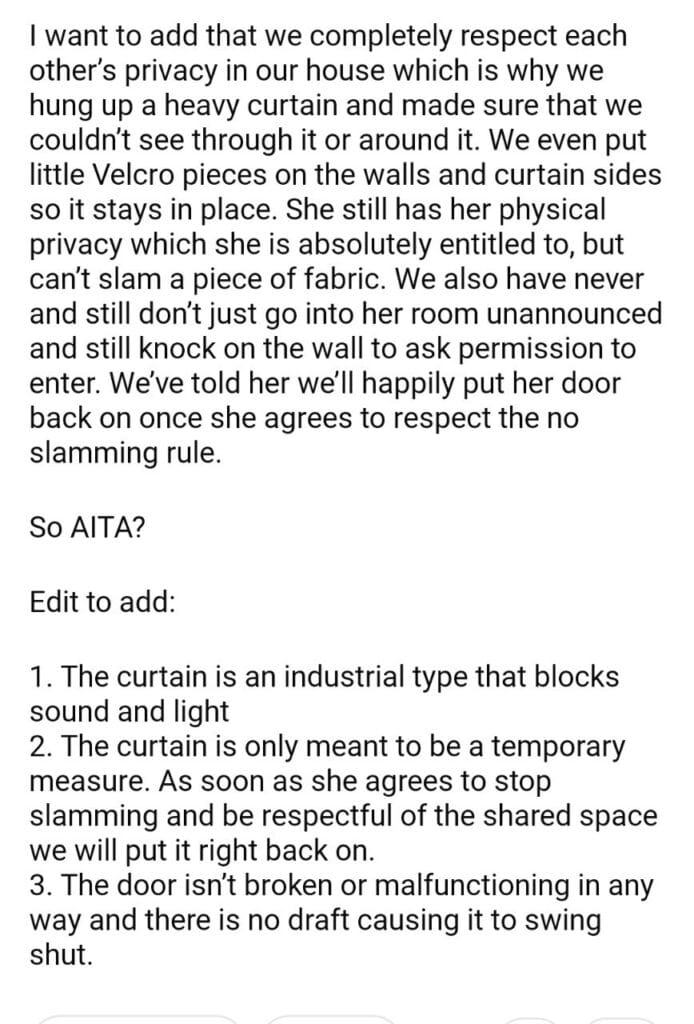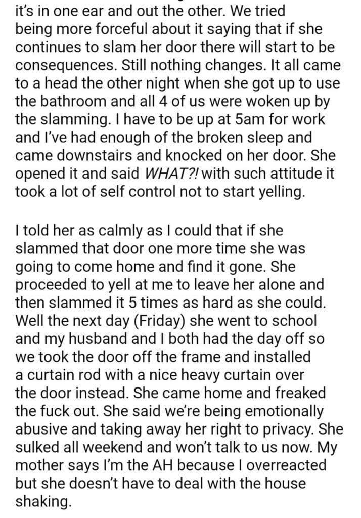 AITA for my daughter’s bedroom door