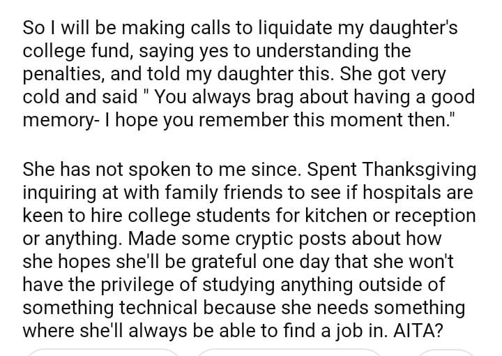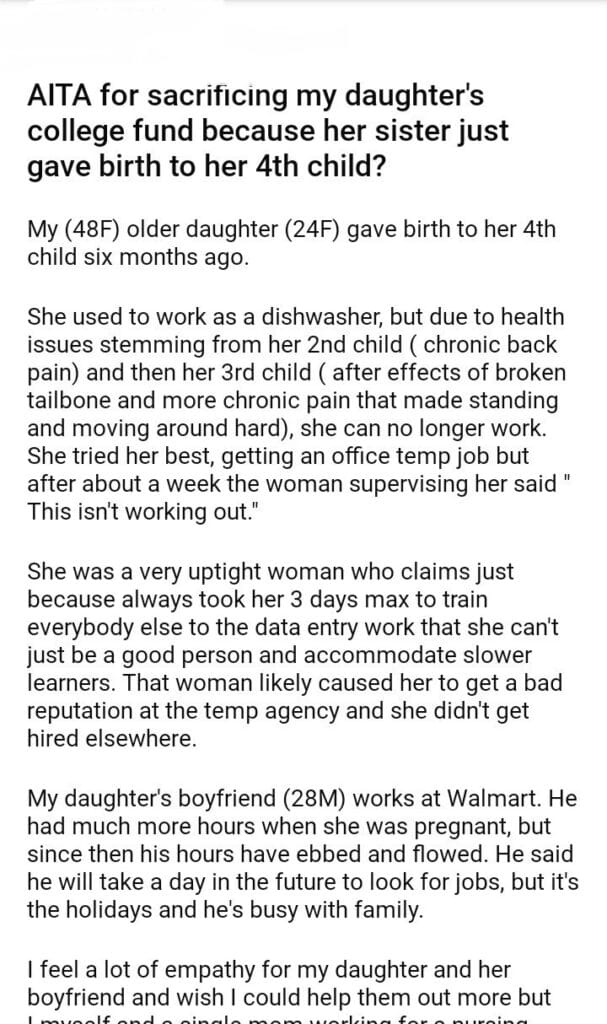 AITA for my daughter’s college because her sister just gave birth to her 4th child?