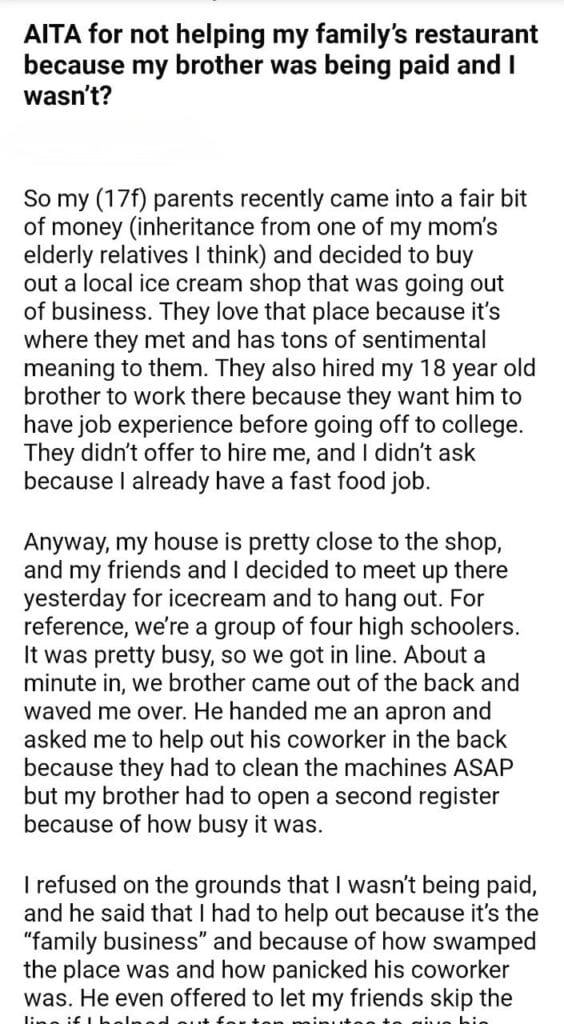 AITA for my family’s restaurant