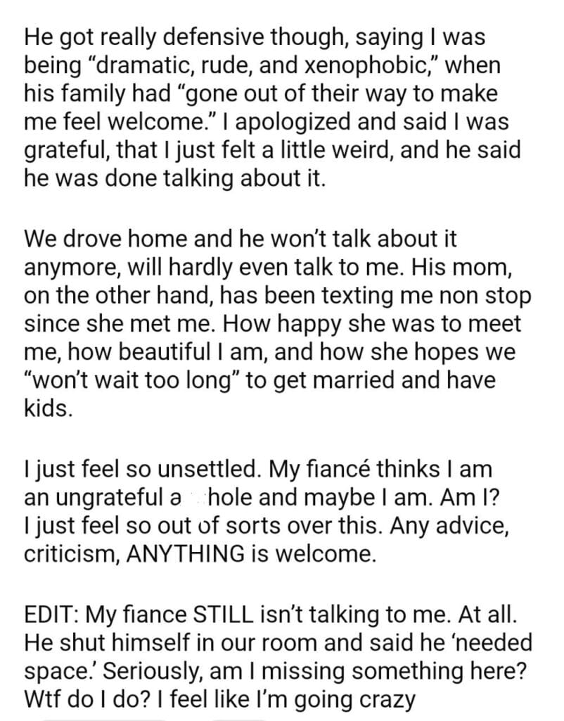 AITA for my fiancé that his family