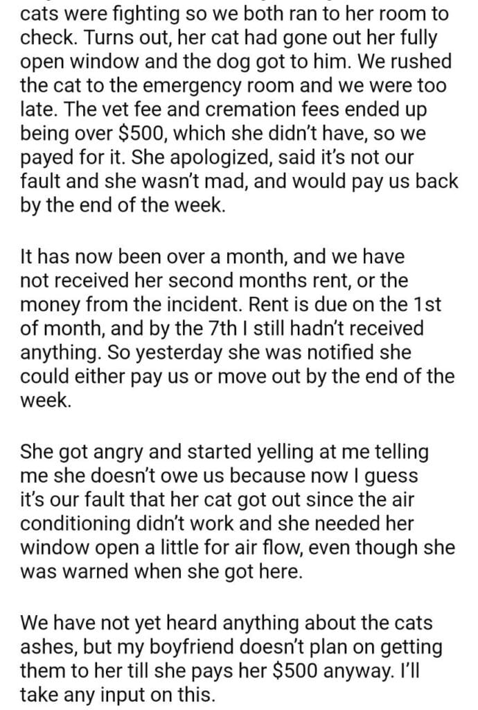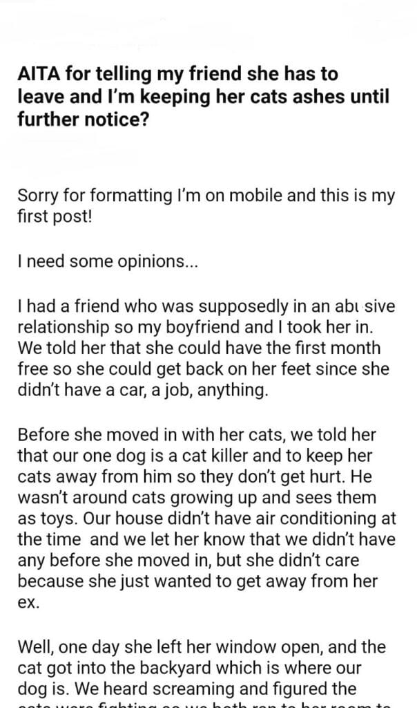 AITA for my friend cat