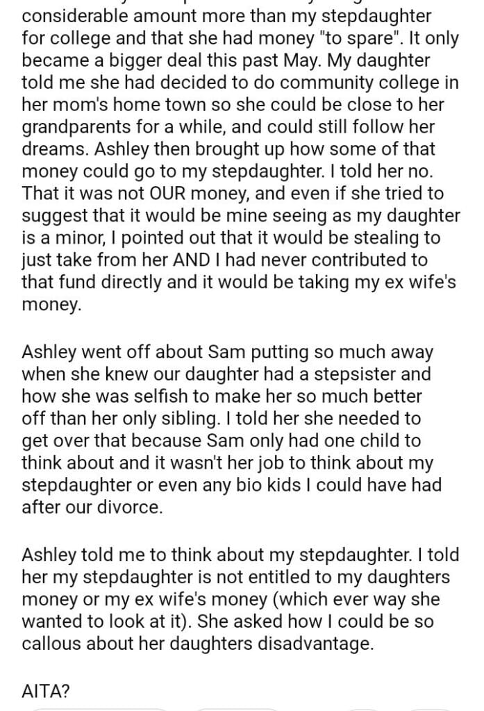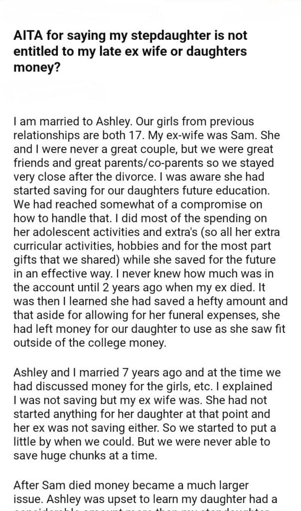 AITA for my late ex wife or daughters money?