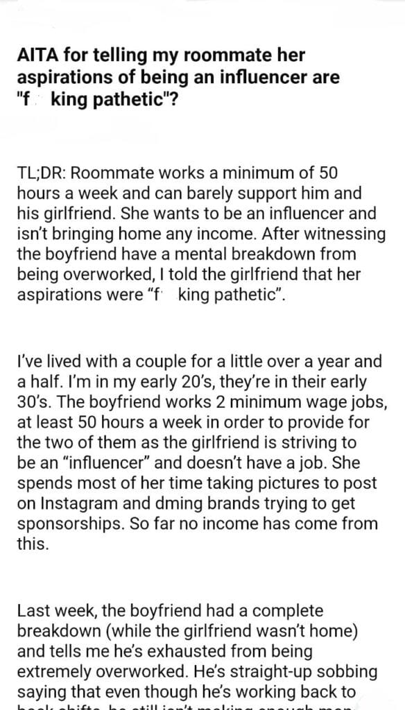 AITA for my roommate aspirations