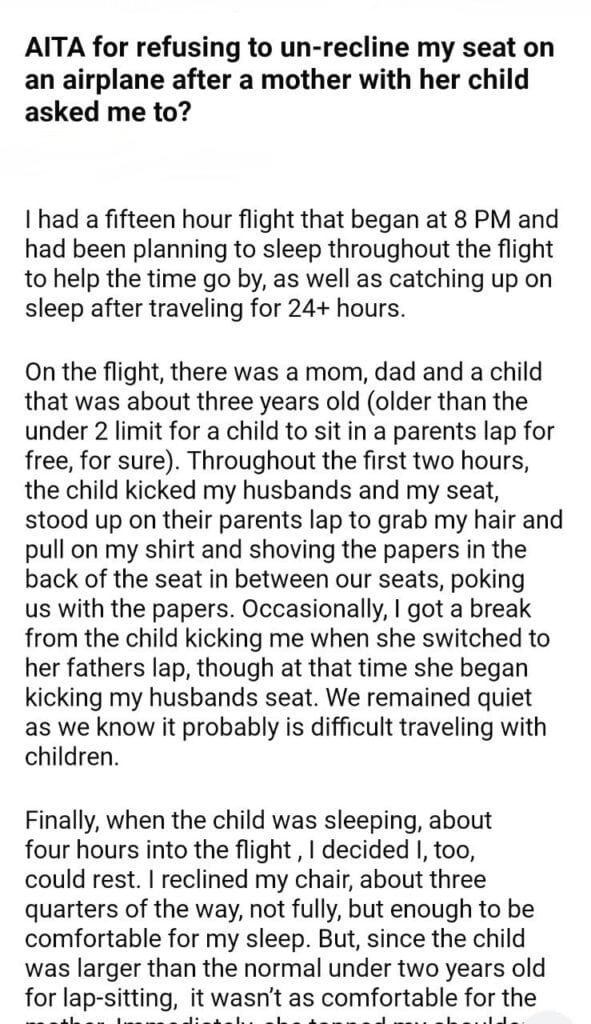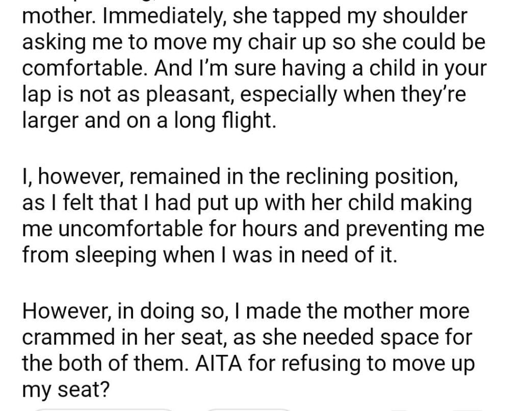 AITA for my seat on an airplane
