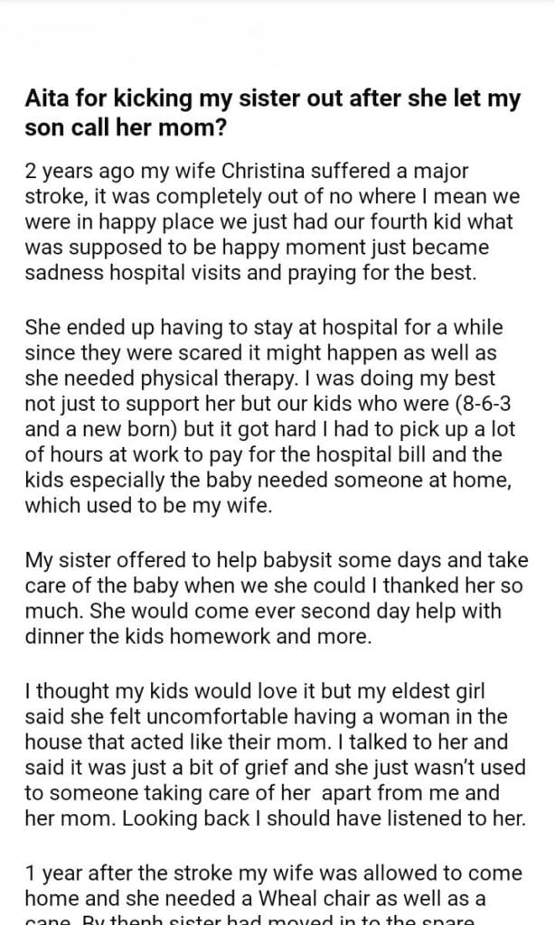 Aita for my sister out after she let my son call her mom?
