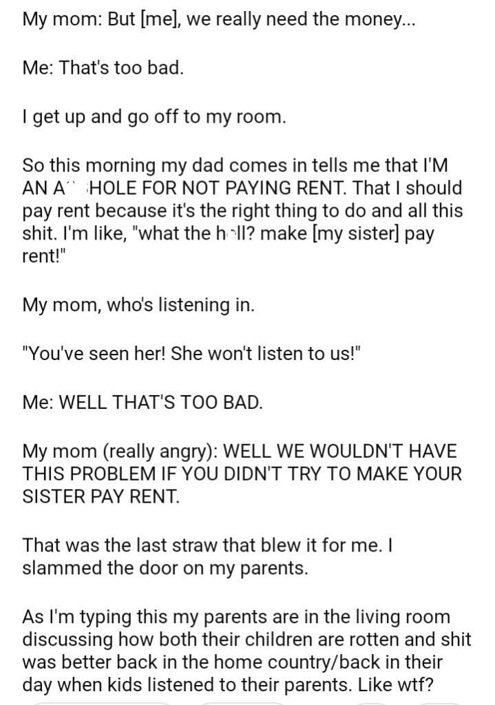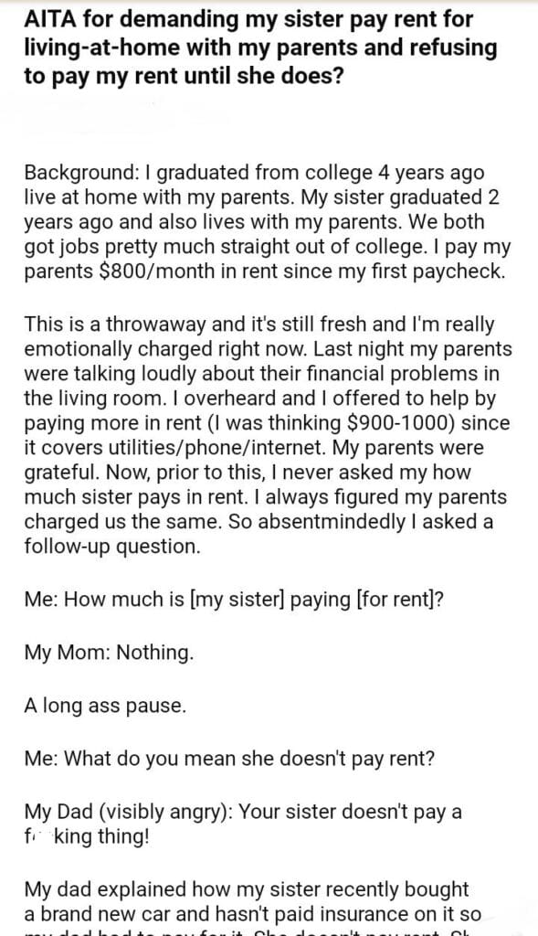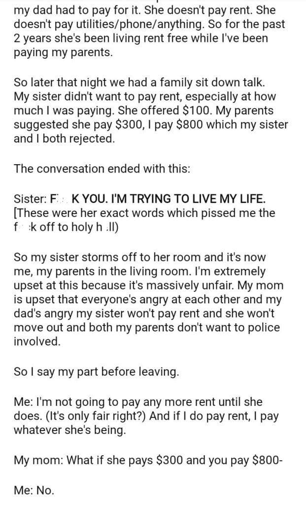 AITA for my sister rent