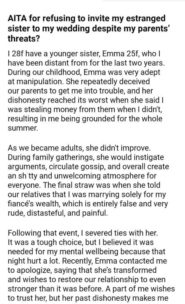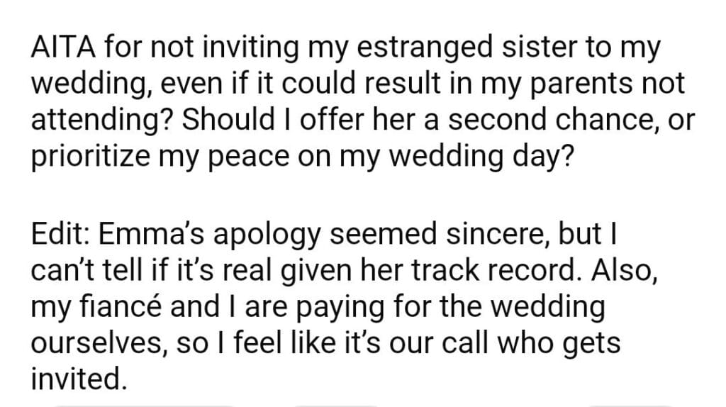 AITA for my sister to my wedding