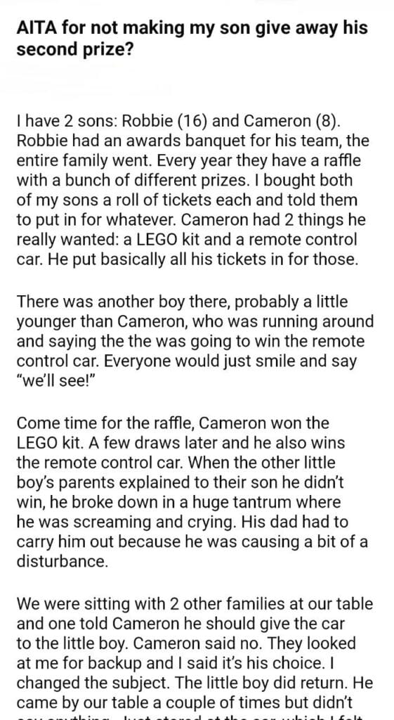 AITA for my son second prize?