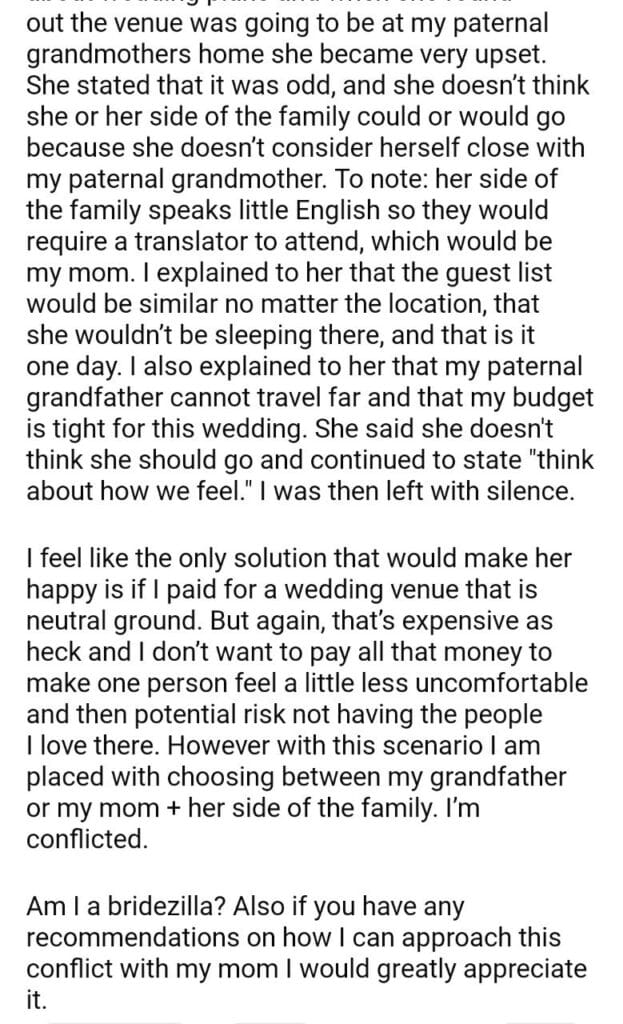 AITA for my wedding venue