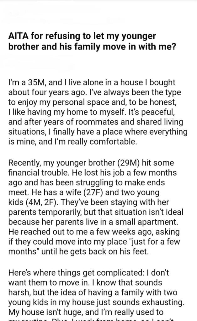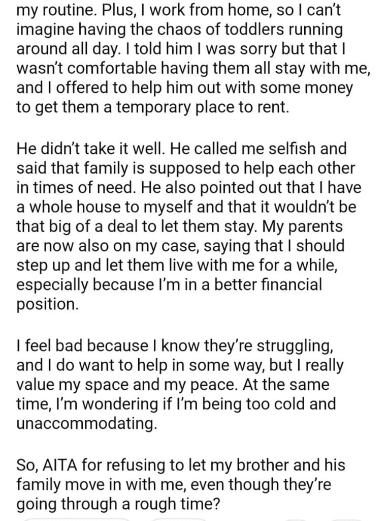 AITA for my younger brother and his family