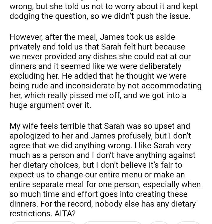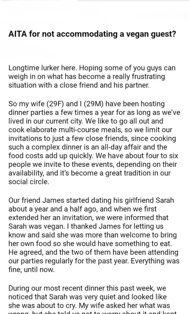 AITA for not accommodating a vegan guest?