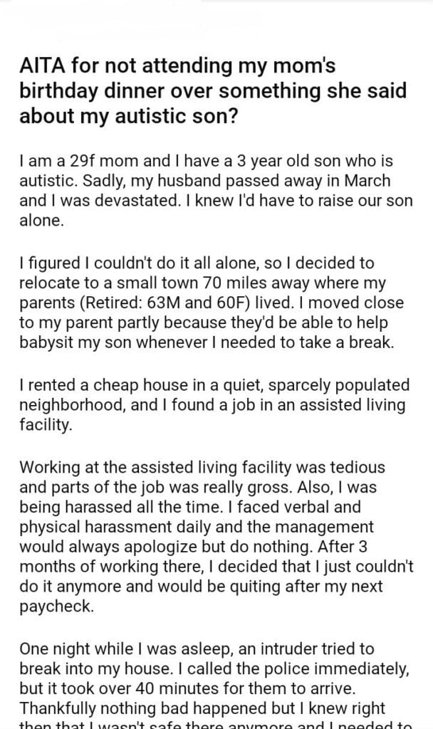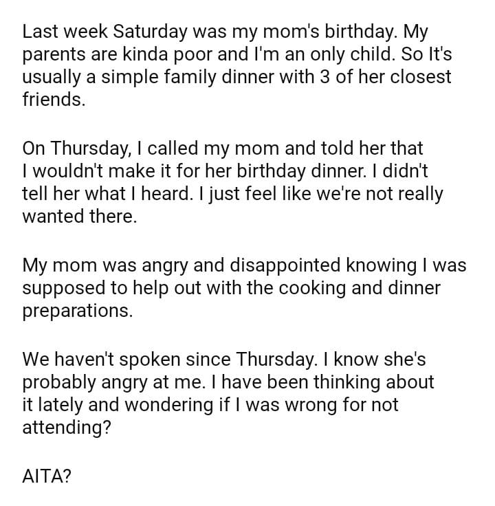 AITA for not attending my mom’s birthday dinner