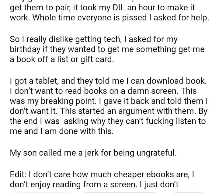 AITA for not being grateful for a birthday gift