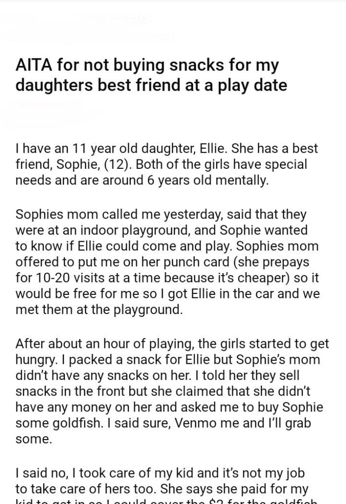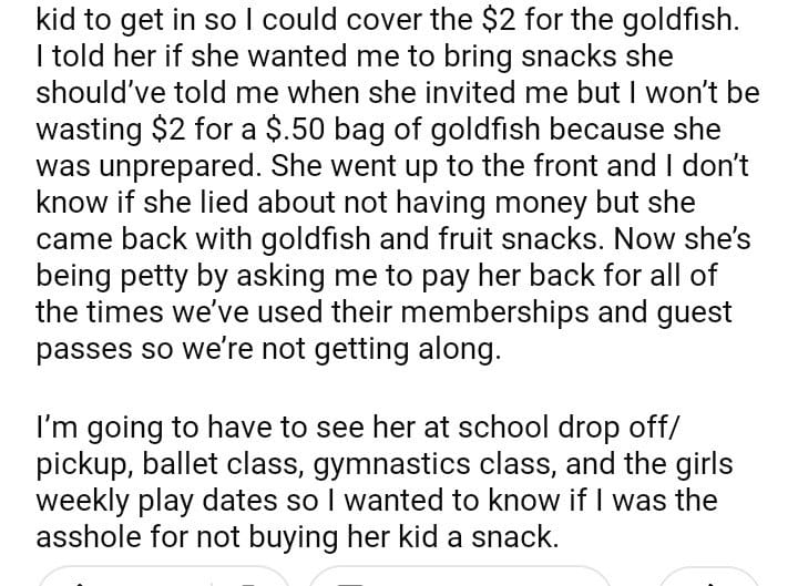 AITA for not buying snacks for my daughters best friend