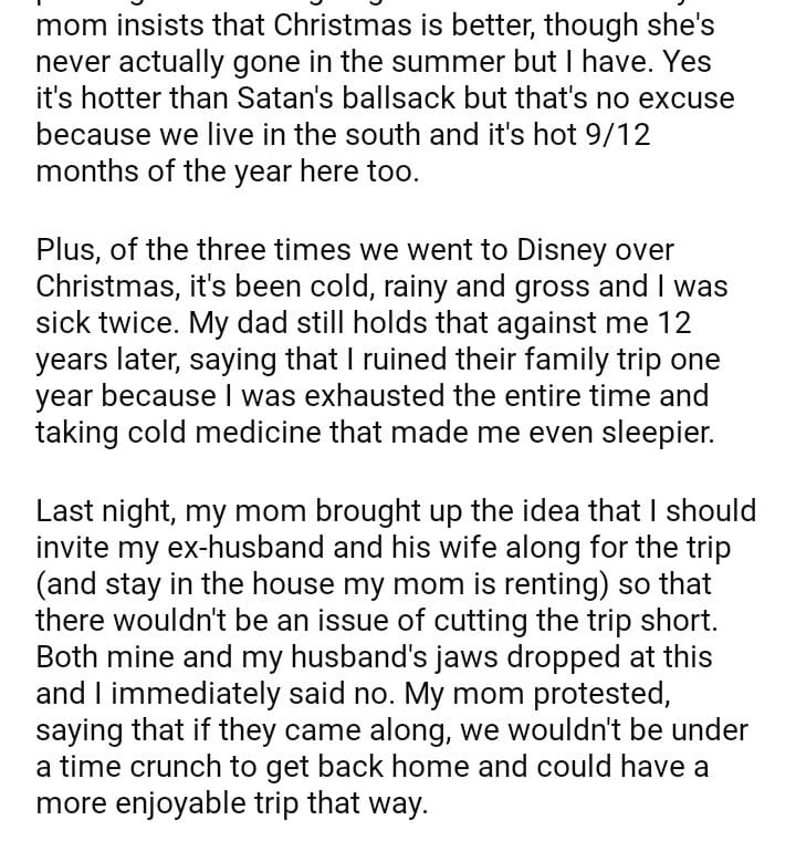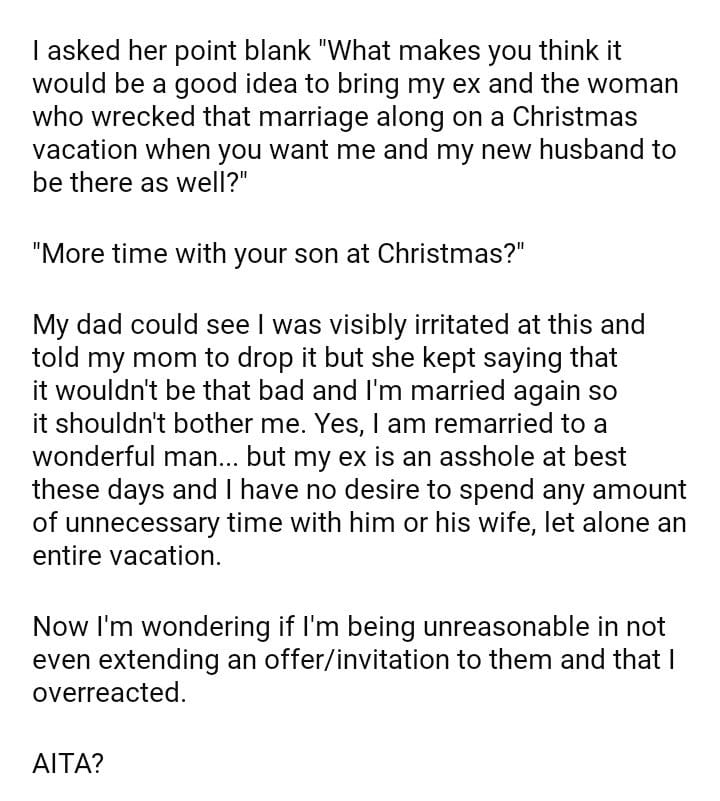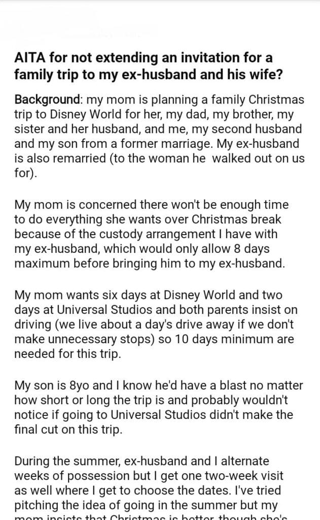AITA for not extending an invitation for a family trip to my ex-husband and his wife?