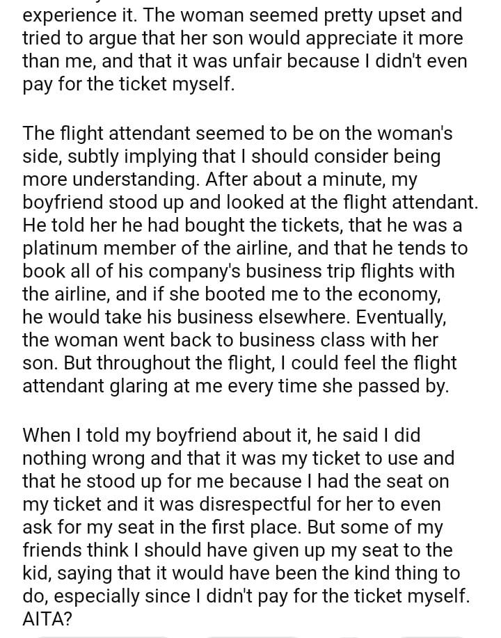 AITA for not giving up my first class ticket for a kid?