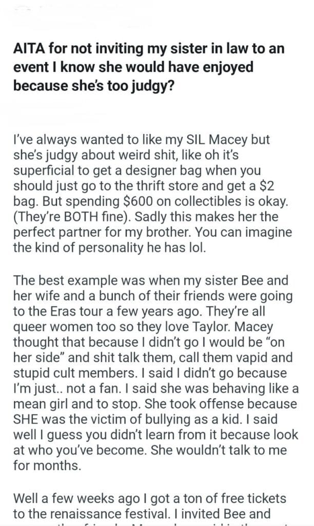 AITA for not inviting my sister in law