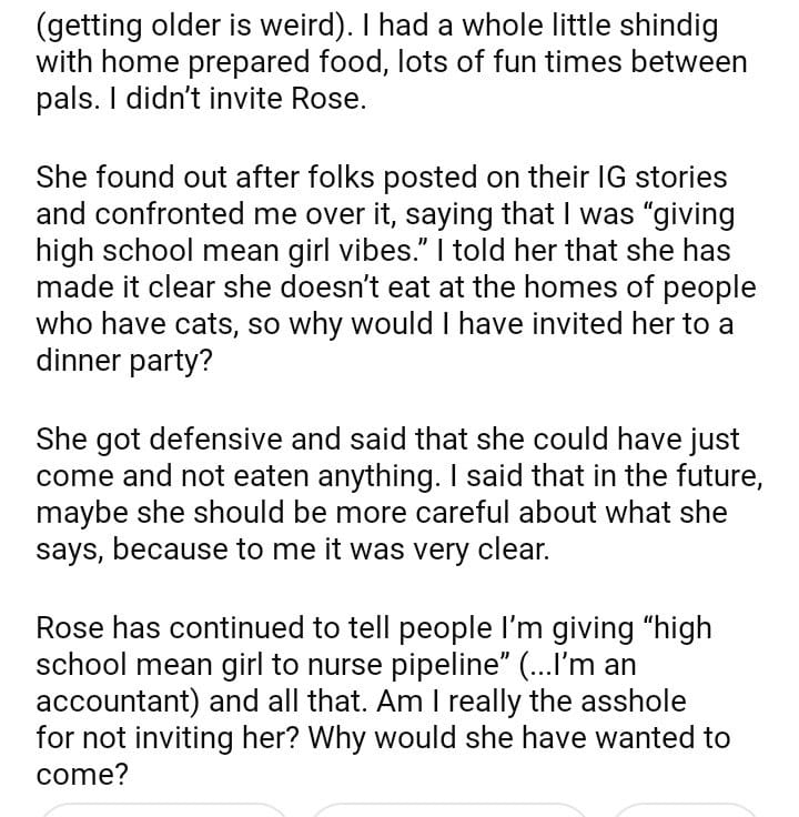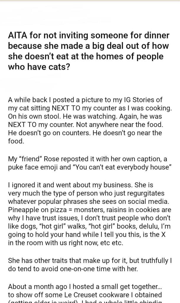 AITA for not inviting someone for dinner