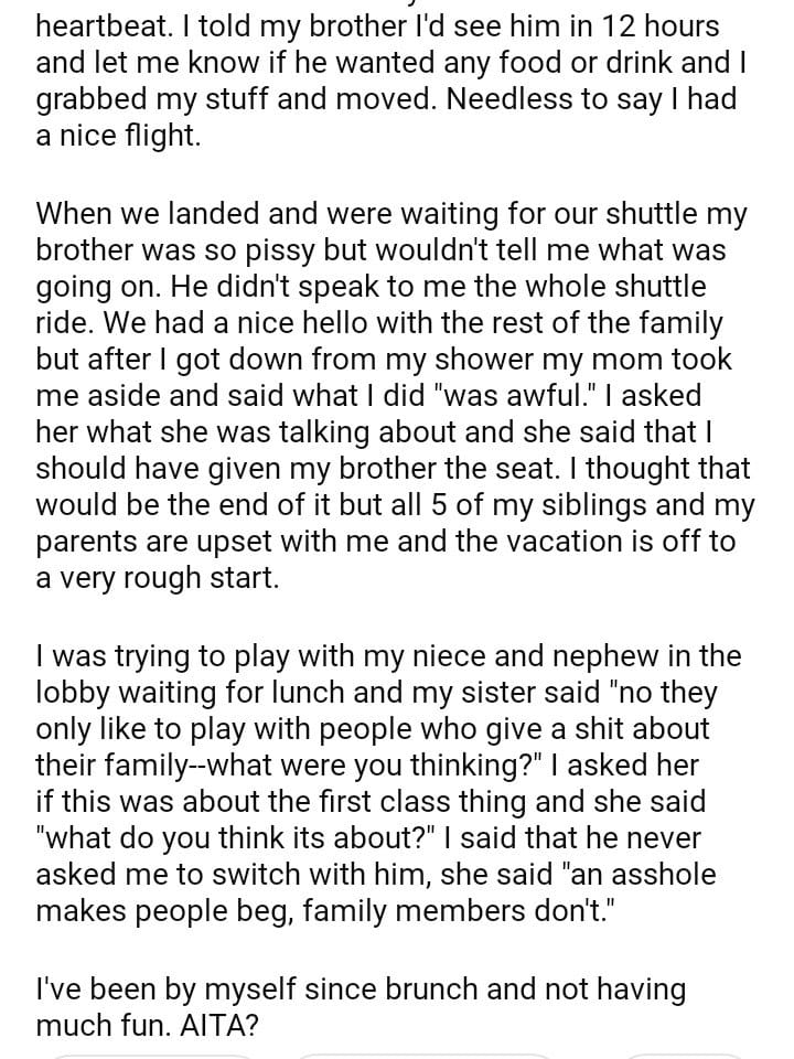 AITA for not letting my 6’6″ brother have the free first class upgrade