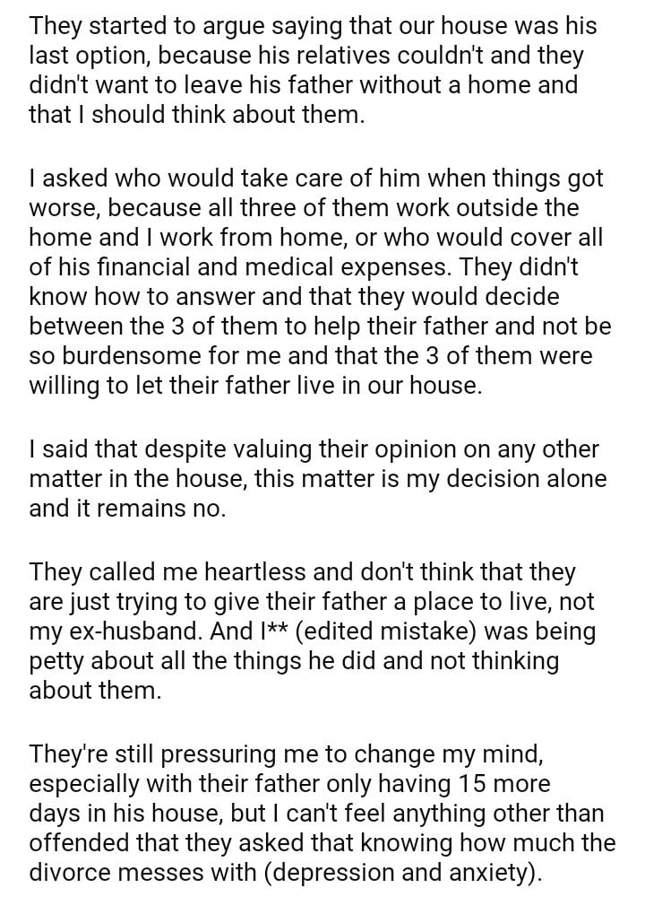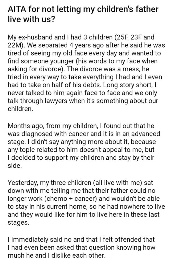 AITA for not letting my children’s father live with us?