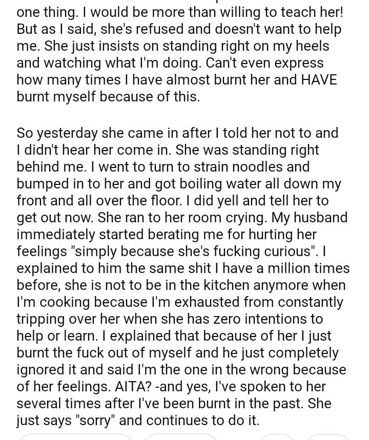 AITA for not letting my step daughter in the kitchen
